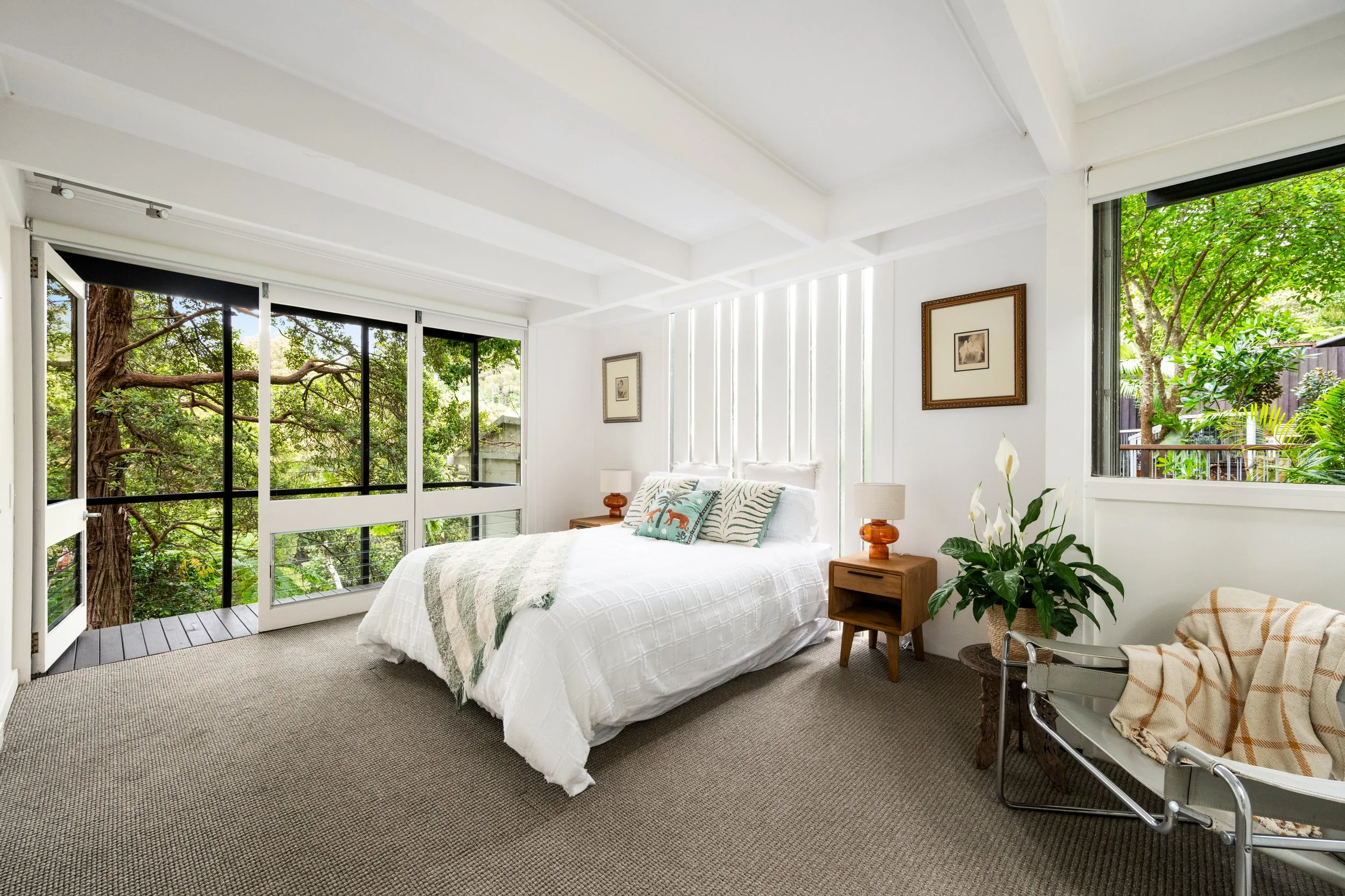 Four tranquil bedrooms with sweeping views of the waterfront bushland.